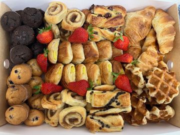 Choose from a selection of mini Danish pastries, muffins, waffles, pancakes and croissants.