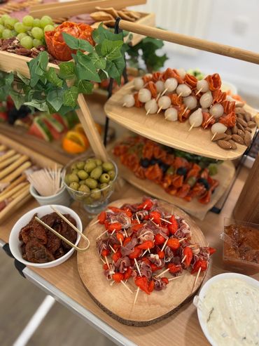 A selection of filled rolls & wraps, meats & cheeses, mini snacks, pork pies, homemade sausage rolls and quiche, crudité, dips, crackers, chutney and mini tray bakes/cupcakes. MINIMUM 4 PEOPLE