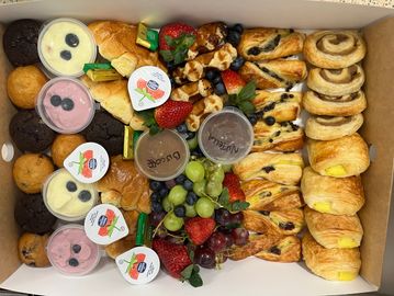 Choose from a selection of mini Danish pastries, muffins, croissants, pancakes or waffles with preserves and mini granola pots.